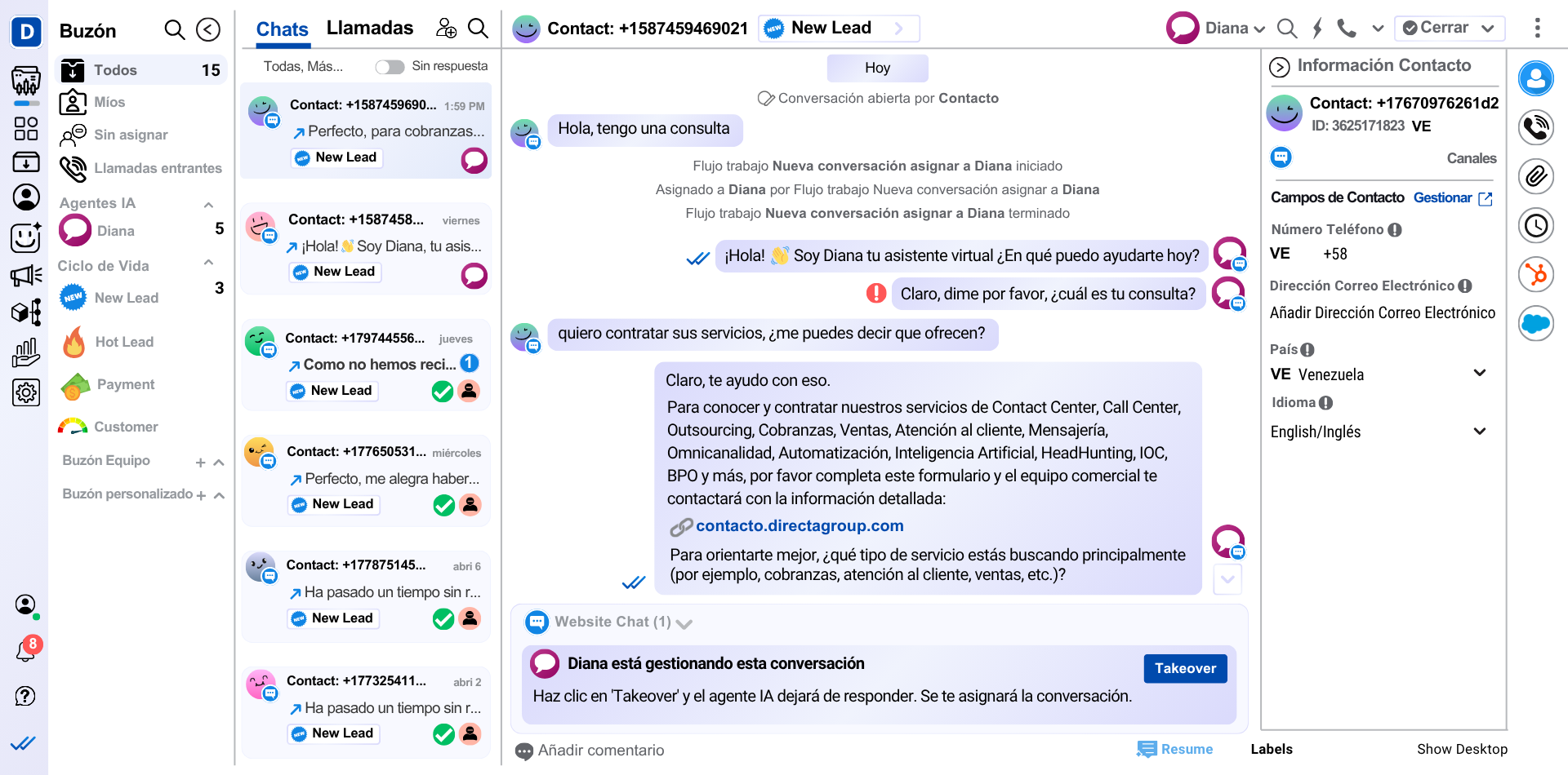 Centraliza todas tus redes sociales y canales de atención en una sola bandeja inteligente impulsada por IA con la tecnología de Directa Group.
