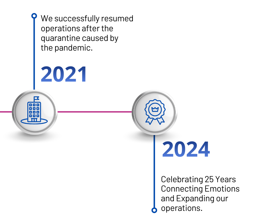 To be an organization that connects emotions with both its clients and its people through the continuous professionalization and excellence of its collaborators, implementing new self-sustainable practices in accordance with business trends, being an icon of reference within our sector.